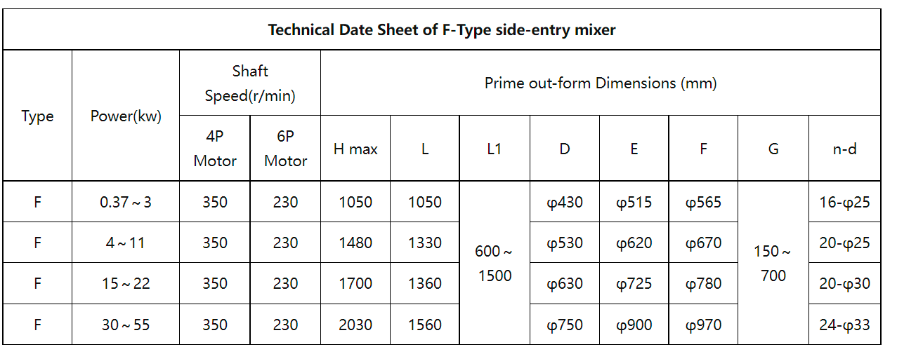 L'agitateur à entrée latérale de type F peut être installé dans un réservoir de pétrole, un réservoir de lubrification, un fût de mazout, un réservoir de paraffine, un réservoir d'asphalte (pour l'asphalte de caoutchouc lourd, le bitume de pétrole de base, l'asphalte de qualité A) et certains réservoirs de stockage pour additifs et autres supports qui il faut remuer.