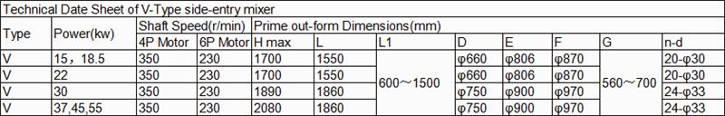 Changements d'angle d'oscillation du mélangeur à entrée latérale de type V